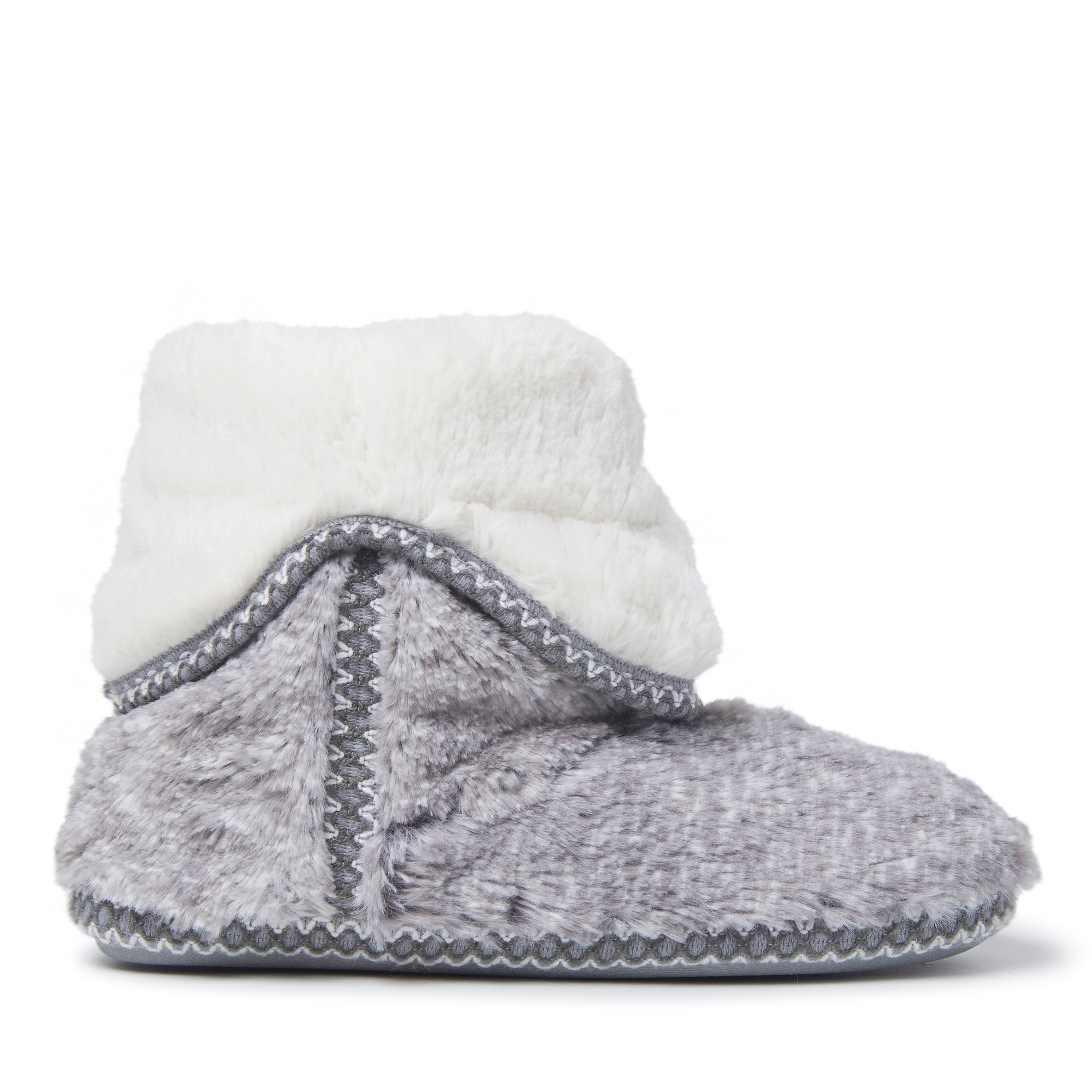 Step confidently with our Beth Slipper Booties featuring a molded thermoplastic rubber outsole crafted for optimal traction and durability. Our versatile slipper sock features innovative DF Adapt technology that actively regulates temperature, preventing moisture buildup. Wear it your way – pull them up for extra warmth or fold them over for a chic, relaxed look. Each slipper is fitted with a multi-density cushioned insole with gel-infused memory foam for a cloud-like feeling on your feet. Plus, increased heel and arch cushioning adds extra comfort for lounging around or running errands. Our easy on and off house slipper booties are machine washable for effortless clean-up. Simply toss them into the washing machine, select a gentle, cold cycle, and let them air dry for a quick and easy refresh.